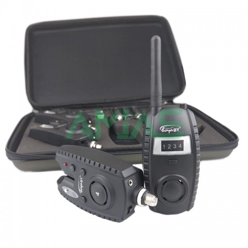 - Комплект: электронный сигнализатор – 4шт, пейджер – 1шт, элементы питания ААА – 8шт, кейс для транспортировки и хранения, штормовые ограничители – 6шт;